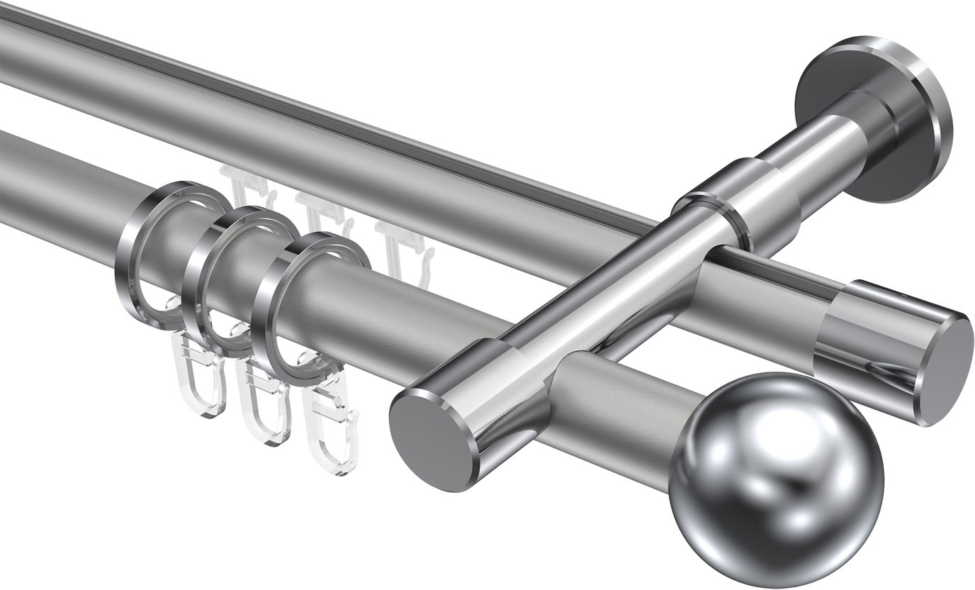 Informationen zu Rundrohr-Innenlauf Gardinenstange Aluminium / Metall 20 mm Ø 2-läufig PRESTIGE - Luino Silbergrau / Chrom: