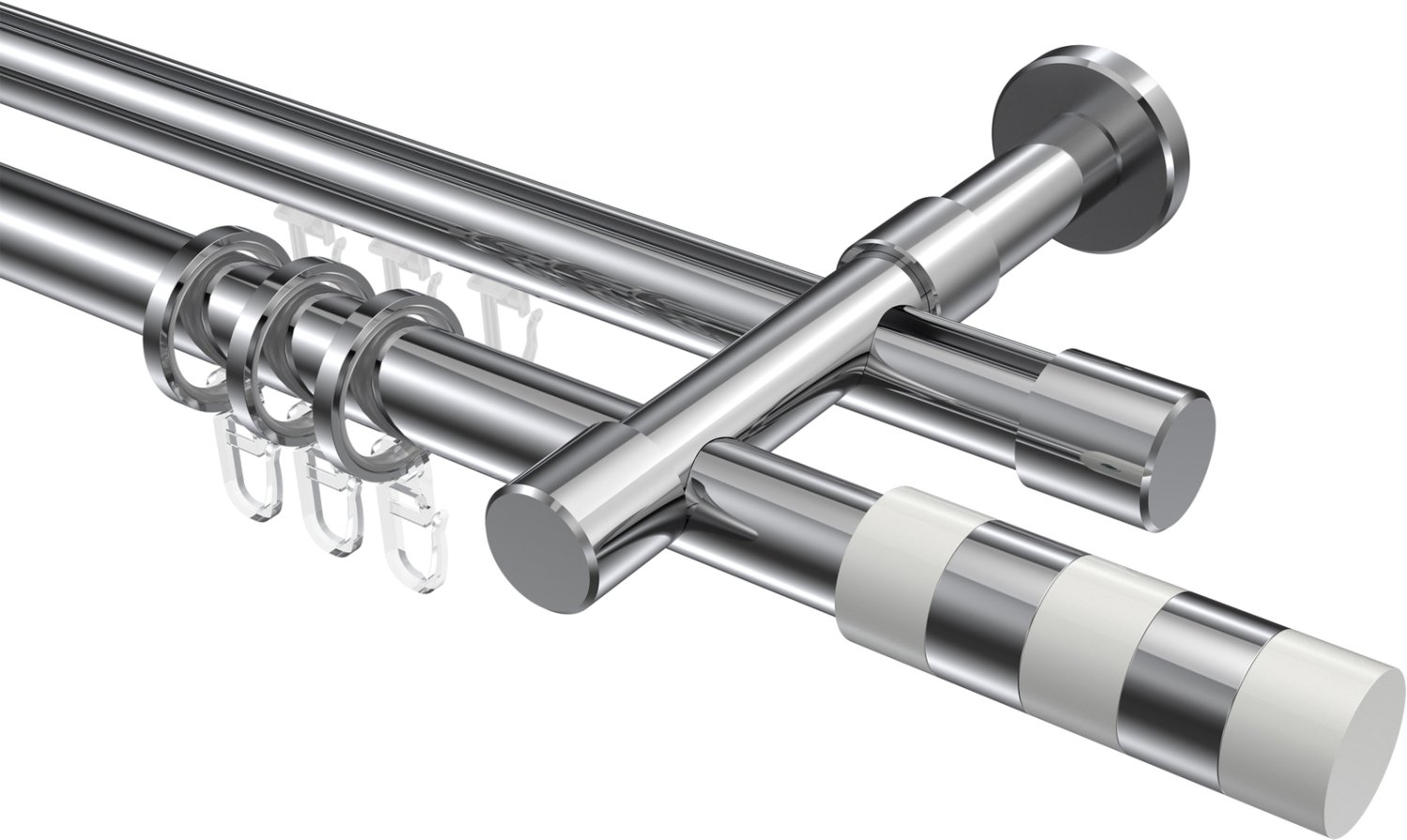 Rundrohr-Innenlauf Gardinenstangen aus Aluminium / Metall in 20 mm Ø, 2-läufig, Modell PRESTIGE - Mavell Chrom