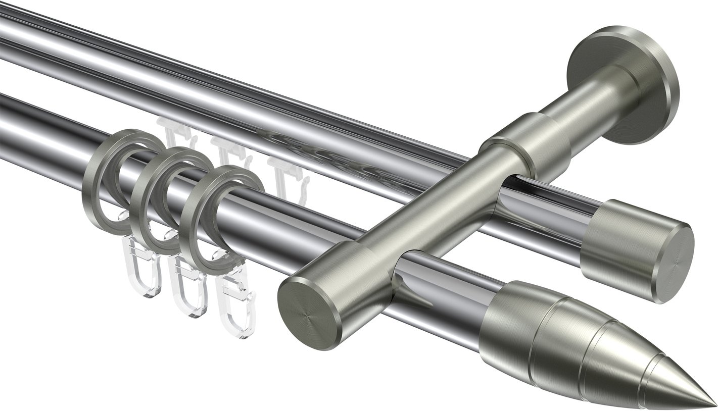 Rundrohr-Innenlauf Gardinenstangen aus Aluminium / Metall in 20 mm Ø, 2-läufig, Modell PRESTIGE - Samanto Chrom / Edelstahl-Optik