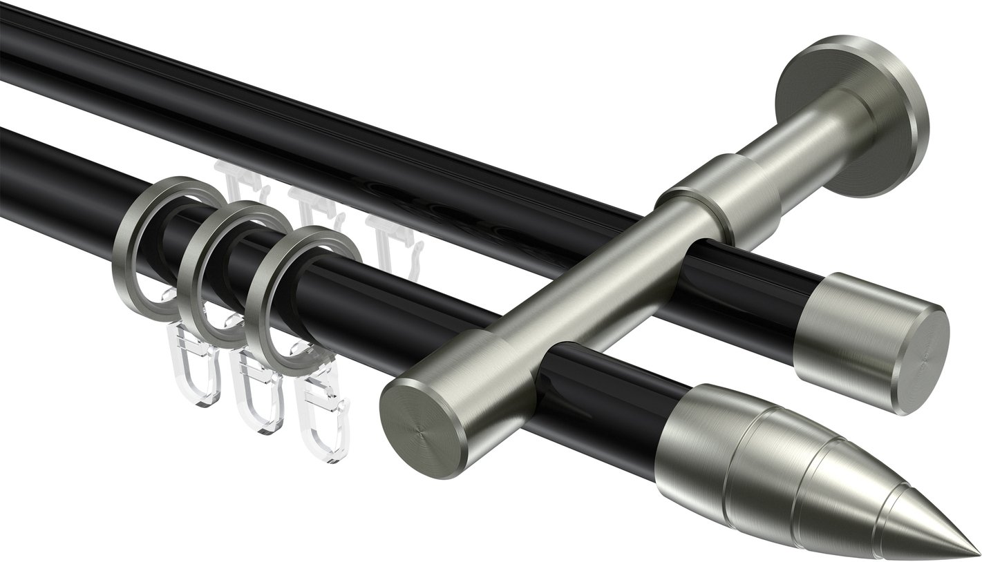 Rundrohr-Innenlauf Gardinenstangen aus Aluminium / Metall in 20 mm Ø, 2-läufig, Modell PRESTIGE - Samanto Schwarz / Edelstahl-Optik