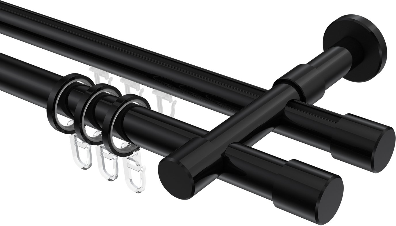 Rundrohr-Innenlauf Gardinenstangen aus Aluminium / Metall in 20 mm Ø, 2-läufig, Modell PRESTIGE - Santo Schwarz