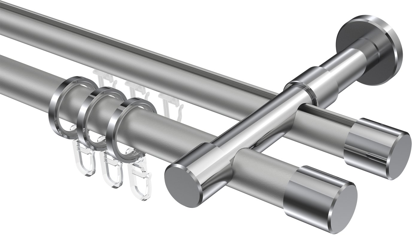 Rundrohr-Innenlauf Gardinenstangen aus Aluminium / Metall in 20 mm Ø, 2-läufig, Modell PRESTIGE - Santo Silbergrau / Chrom