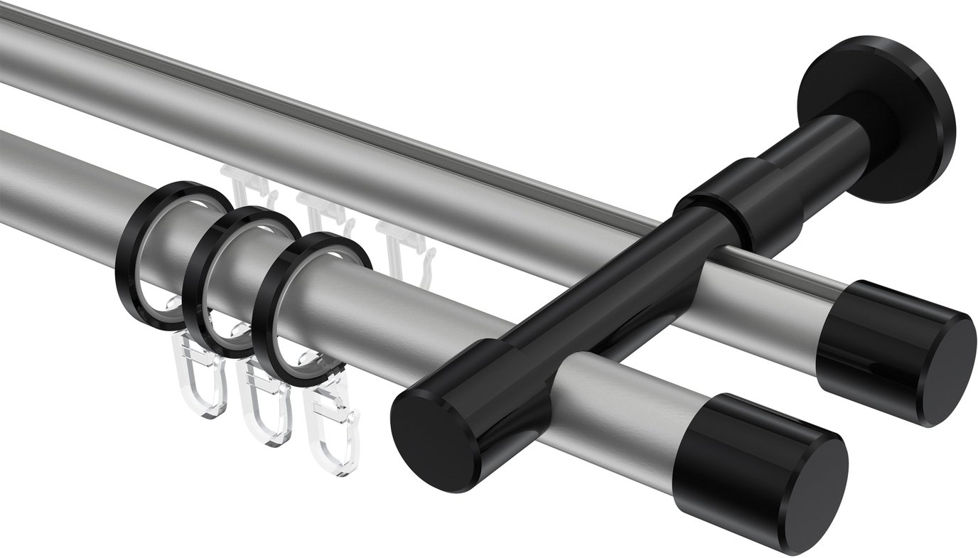Rundrohr-Innenlauf Gardinenstangen aus Aluminium / Metall in 20 mm Ø, 2-läufig, Modell PRESTIGE - Santo Silbergrau / Schwarz