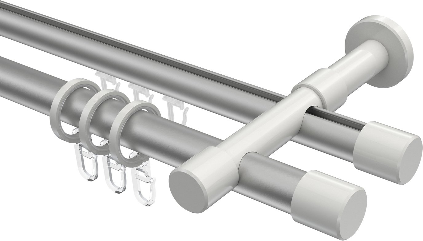 Rundrohr-Innenlauf Gardinenstangen aus Aluminium / Metall in 20 mm Ø, 2-läufig, Modell PRESTIGE - Santo Silbergrau / Weiß