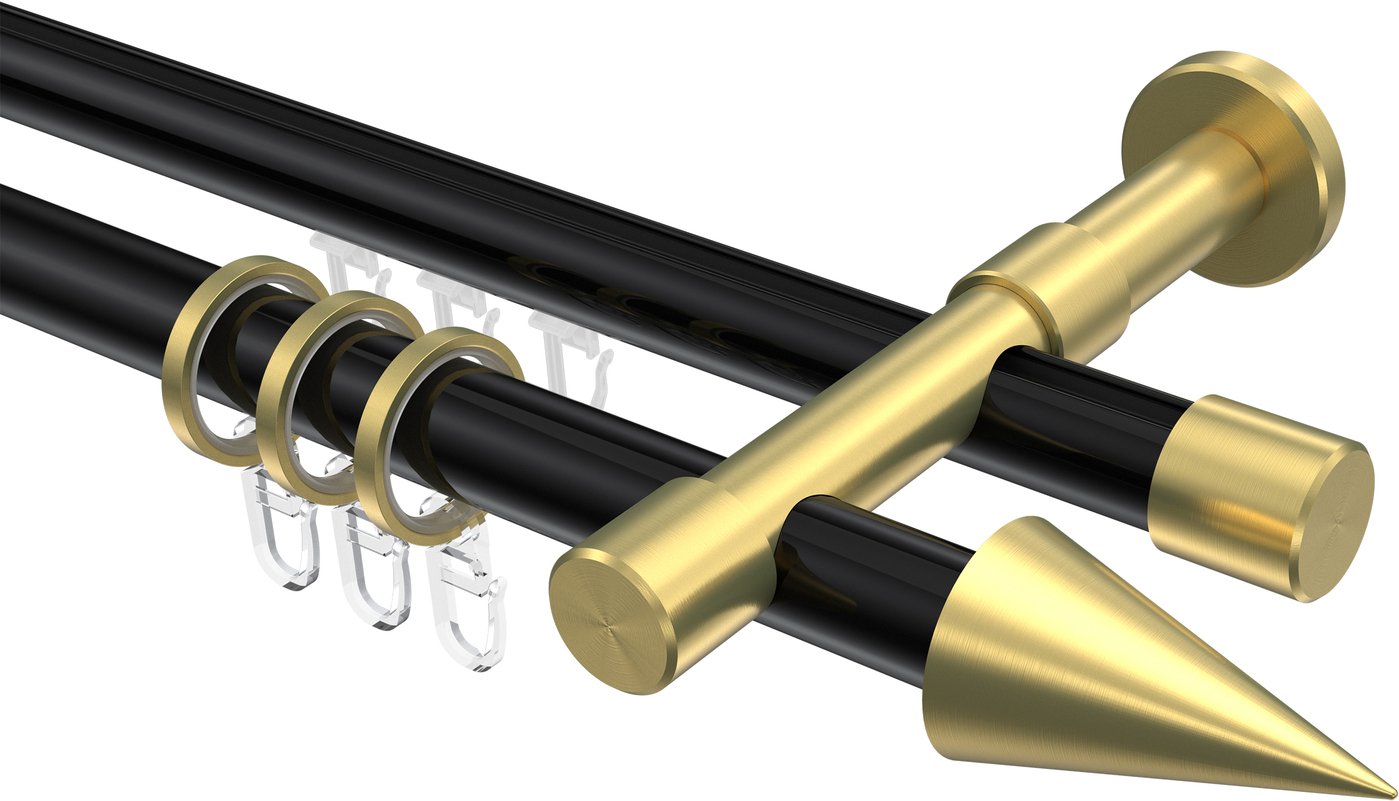 Rundrohr-Innenlauf Gardinenstangen aus Aluminium / Metall in 20 mm Ø, 2-läufig, Modell PRESTIGE - Savio Schwarz / Messing-Optik