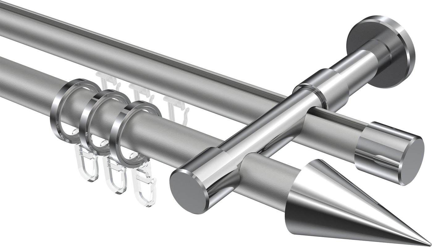 Rundrohr-Innenlauf Gardinenstangen aus Aluminium / Metall in 20 mm Ø, 2-läufig, Modell PRESTIGE - Savio Silbergrau / Chrom