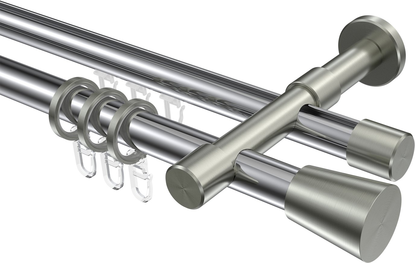 Rundrohr-Innenlauf Gardinenstangen aus Aluminium / Metall in 20 mm Ø, 2-läufig, Modell PRESTIGE - Sitra Chrom / Edelstahl-Optik
