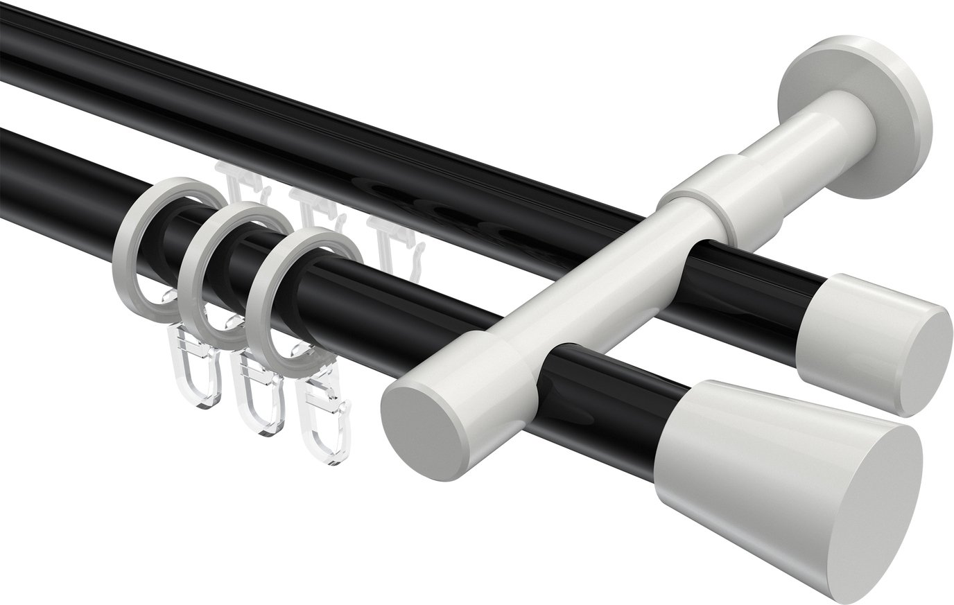 Rundrohr-Innenlauf Gardinenstangen aus Aluminium / Metall in 20 mm Ø, 2-läufig, Modell PRESTIGE - Sitra Schwarz / Weiß