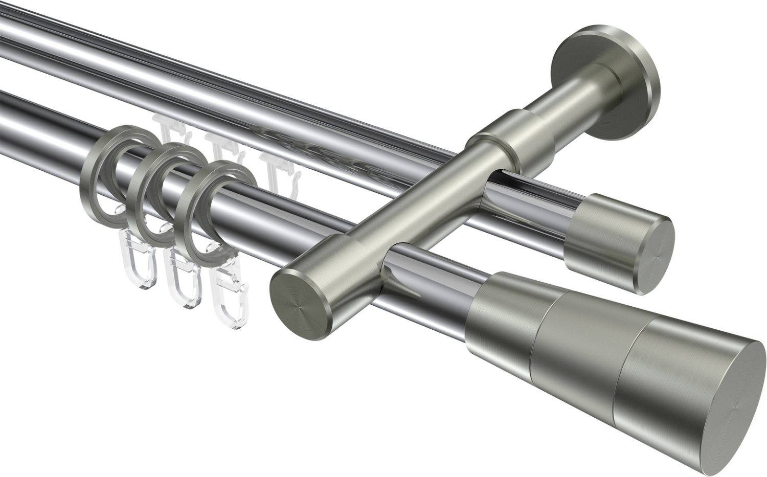 Rundrohr-Innenlauf Gardinenstangen aus Aluminium / Metall in 20 mm Ø, 2-läufig, Modell PRESTIGE - Tanara Chrom / Edelstahl-Optik