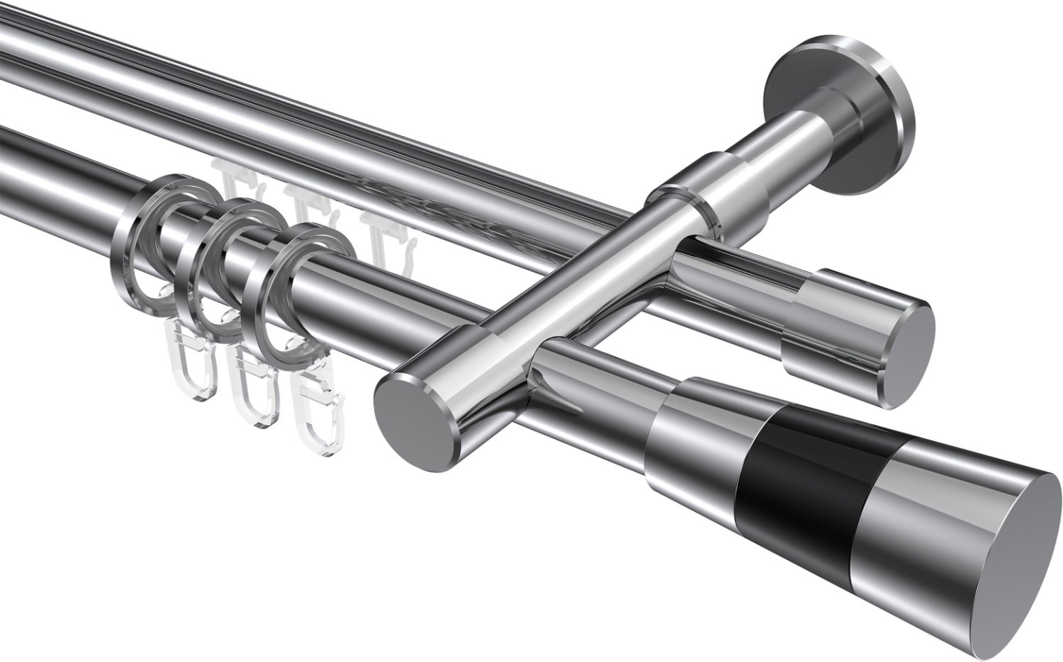 Rundrohr-Innenlauf Gardinenstangen aus Aluminium / Metall in 20 mm Ø, 2-läufig, Modell PRESTIGE - Tanara Chrom