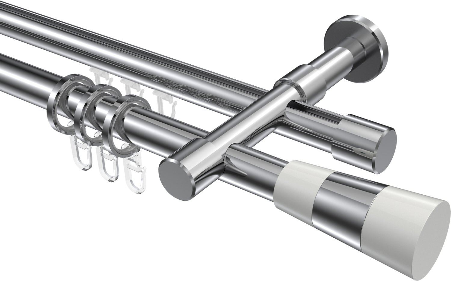 Rundrohr-Innenlauf Gardinenstangen aus Aluminium / Metall in 20 mm Ø, 2-läufig, Modell PRESTIGE - Tanara Chrom