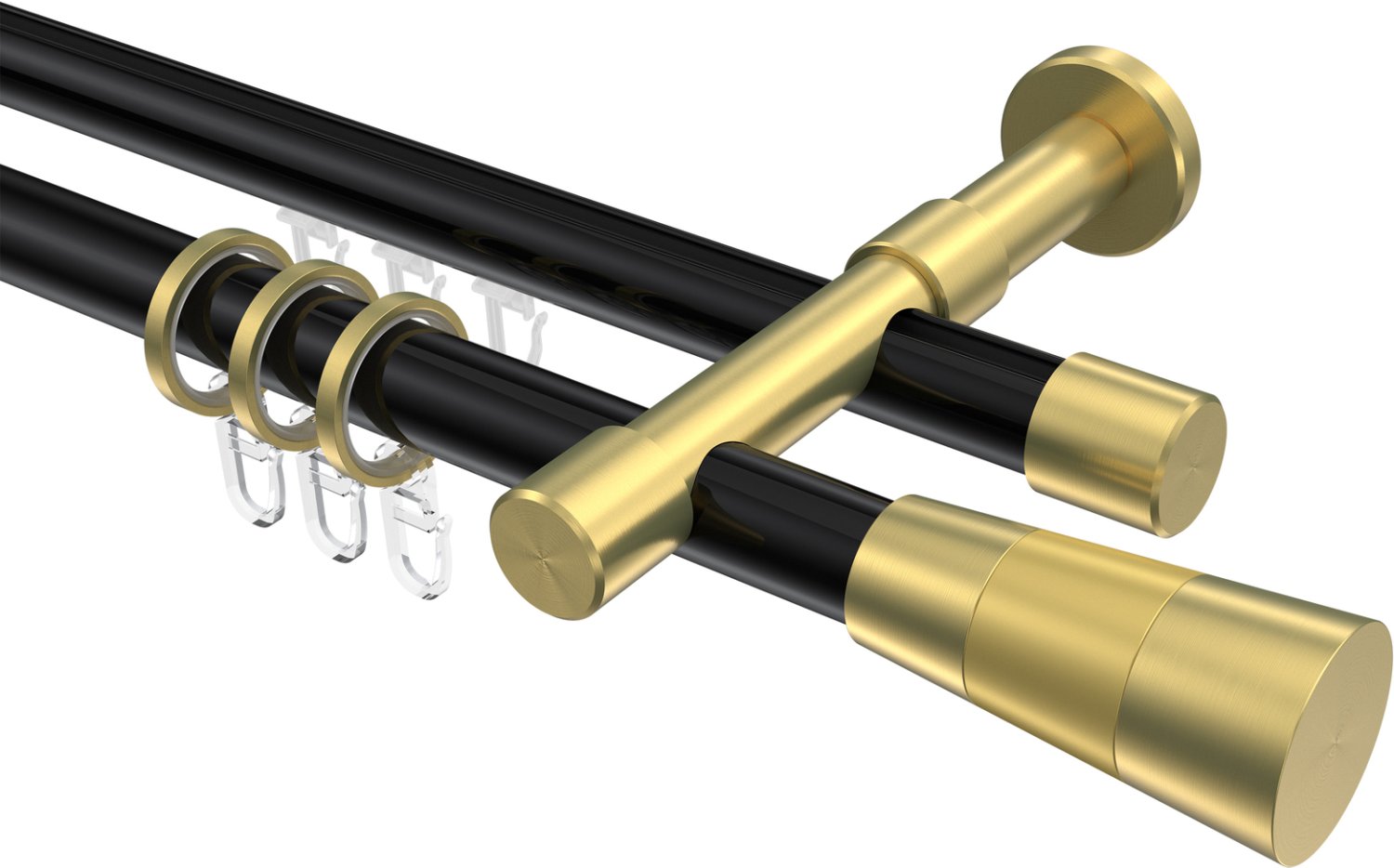 Rundrohr-Innenlauf Gardinenstangen aus Aluminium / Metall in 20 mm Ø, 2-läufig, Modell PRESTIGE - Tanara Schwarz / Messing-Optik
