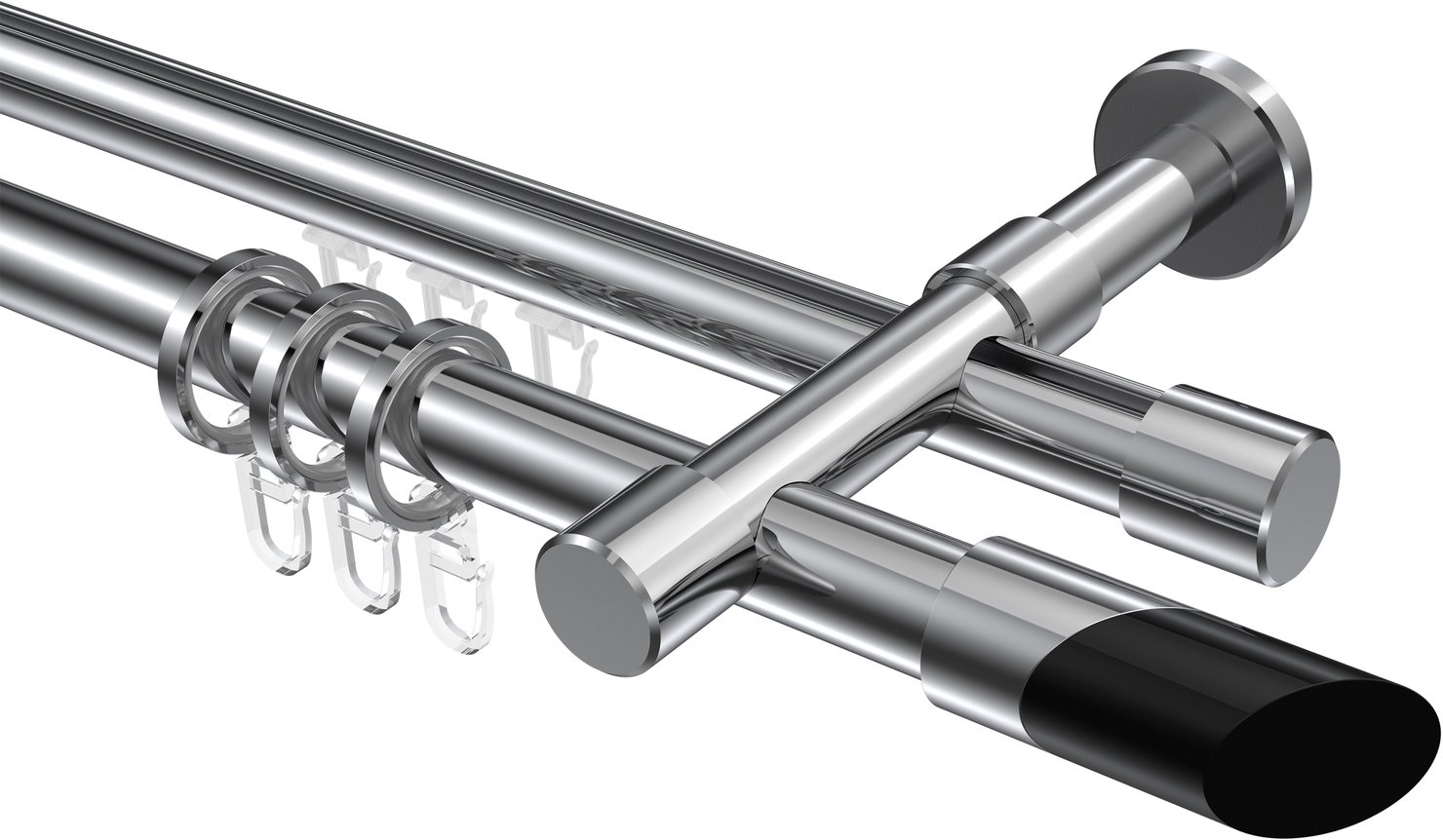 Rundrohr-Innenlauf Gardinenstangen aus Aluminium / Metall in 20 mm Ø, 2-läufig, Modell PRESTIGE - Verano Chrom