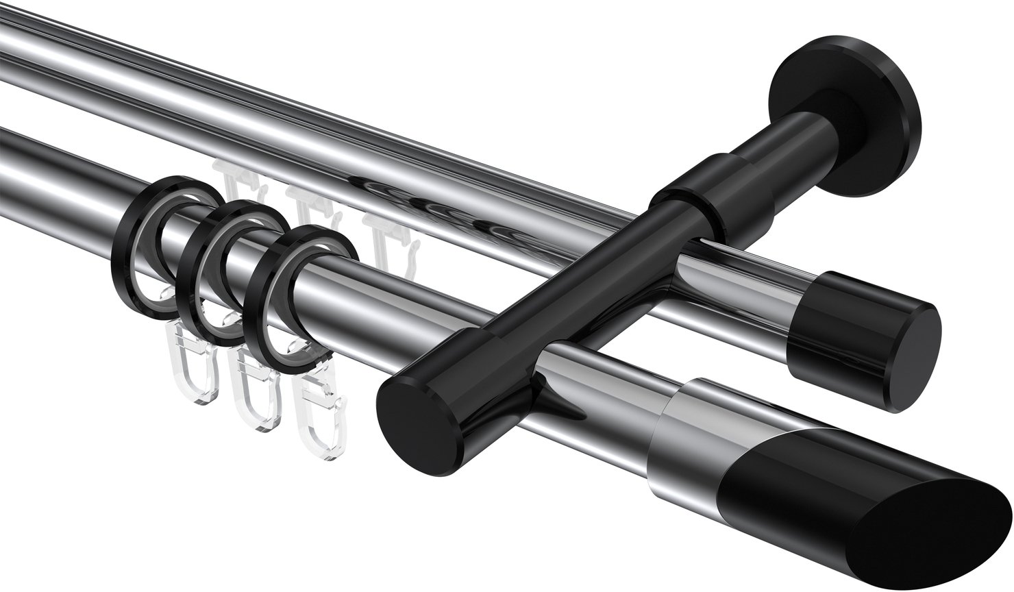 Rundrohr-Innenlauf Gardinenstangen aus Aluminium / Metall in 20 mm Ø, 2-läufig, Modell PRESTIGE - Verano Chrom / Schwarz