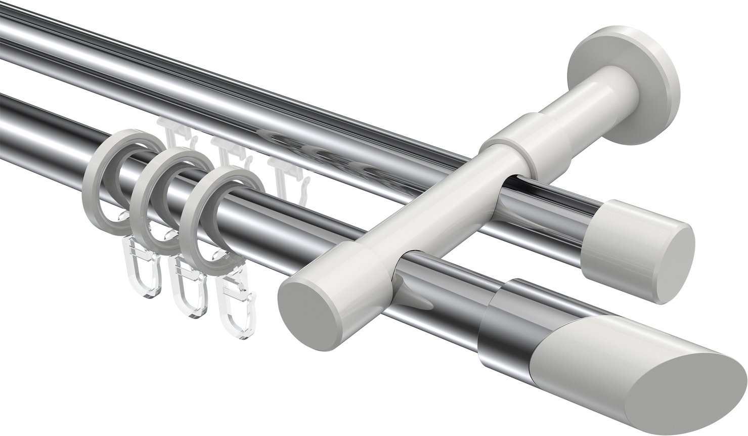 Rundrohr-Innenlauf Gardinenstangen aus Aluminium / Metall in 20 mm Ø, 2-läufig, Modell PRESTIGE - Verano Chrom / Weiß