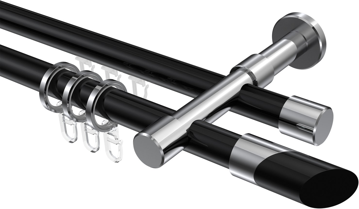 Rundrohr-Innenlauf Gardinenstangen aus Aluminium / Metall in 20 mm Ø, 2-läufig, Modell PRESTIGE - Verano Schwarz / Chrom