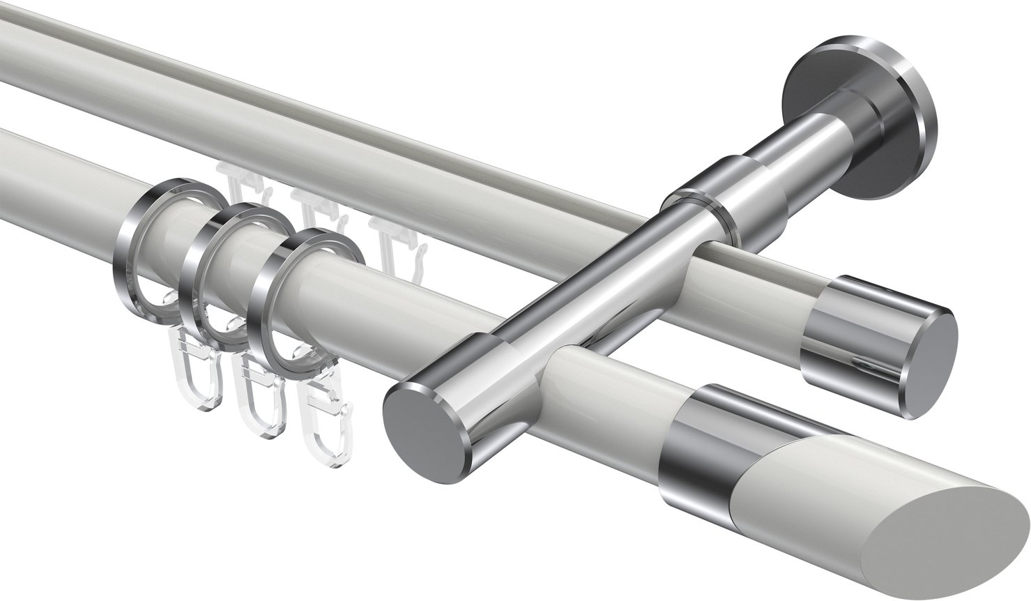 Rundrohr-Innenlauf Gardinenstangen aus Aluminium / Metall in 20 mm Ø, 2-läufig, Modell PRESTIGE - Verano Weiß / Chrom