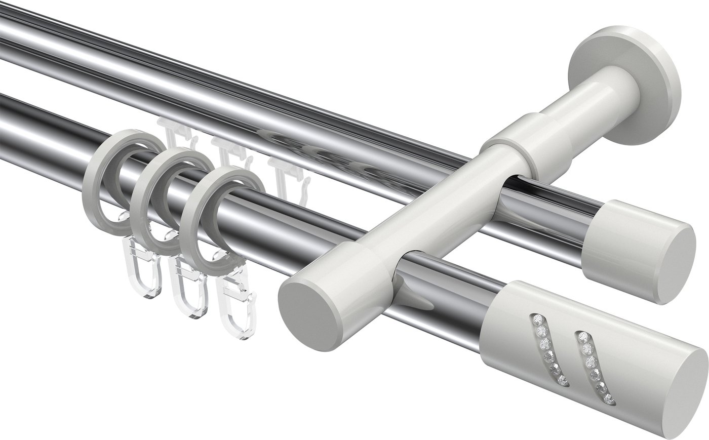 Rundrohr-Innenlauf Gardinenstangen aus Aluminium / Metall in 20 mm Ø, 2-läufig, Modell PRESTIGE - Zoena Chrom / Weiß
