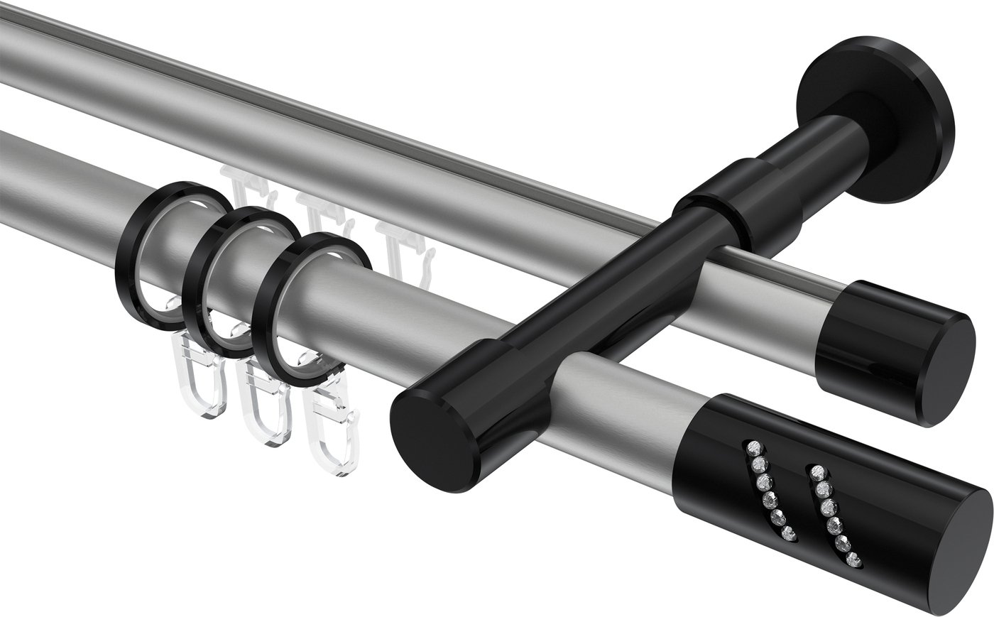 Rundrohr-Innenlauf Gardinenstangen aus Aluminium / Metall in 20 mm Ø, 2-läufig, Modell PRESTIGE - Zoena Silbergrau / Schwarz