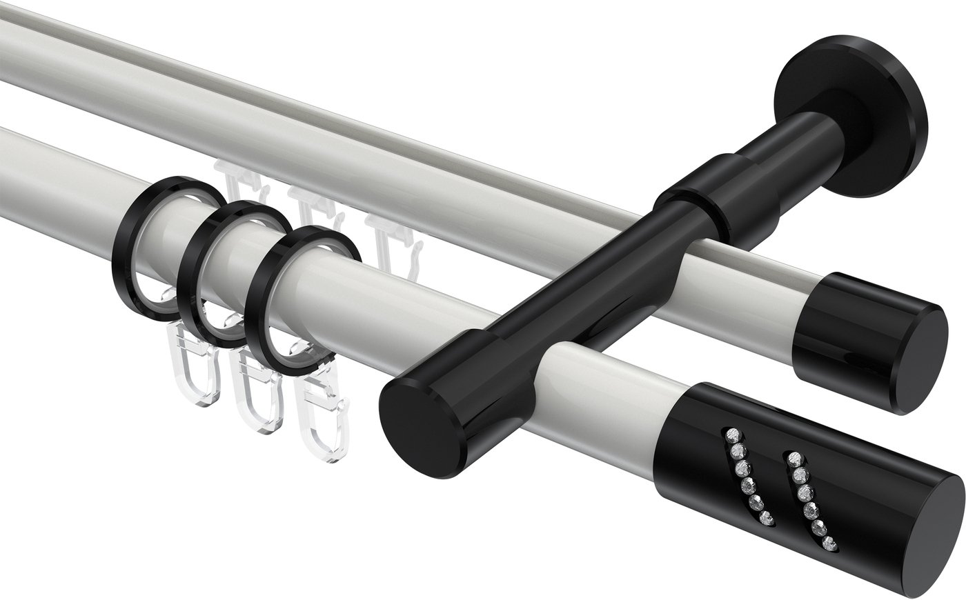 Rundrohr-Innenlauf Gardinenstangen aus Aluminium / Metall in 20 mm Ø, 2-läufig, Modell PRESTIGE - Zoena Weiß / Schwarz