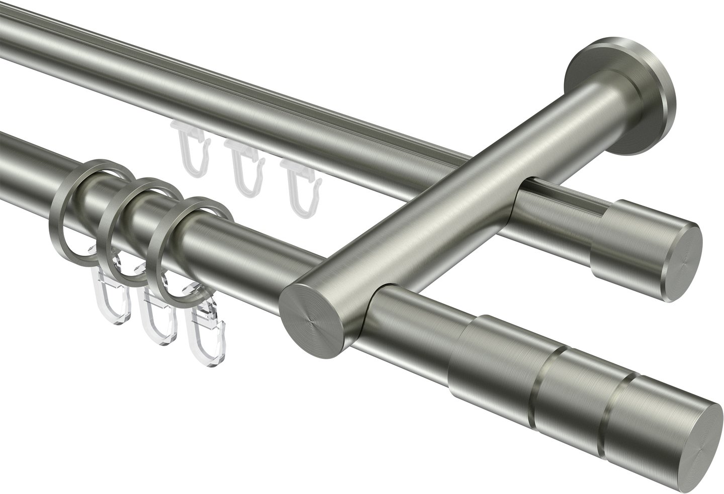 Rundrohr-Innenlauf Gardinenstangen aus Edelstahl-Optik in 20 mm Ø, 2-läufig, Modell PLATON - Elanto