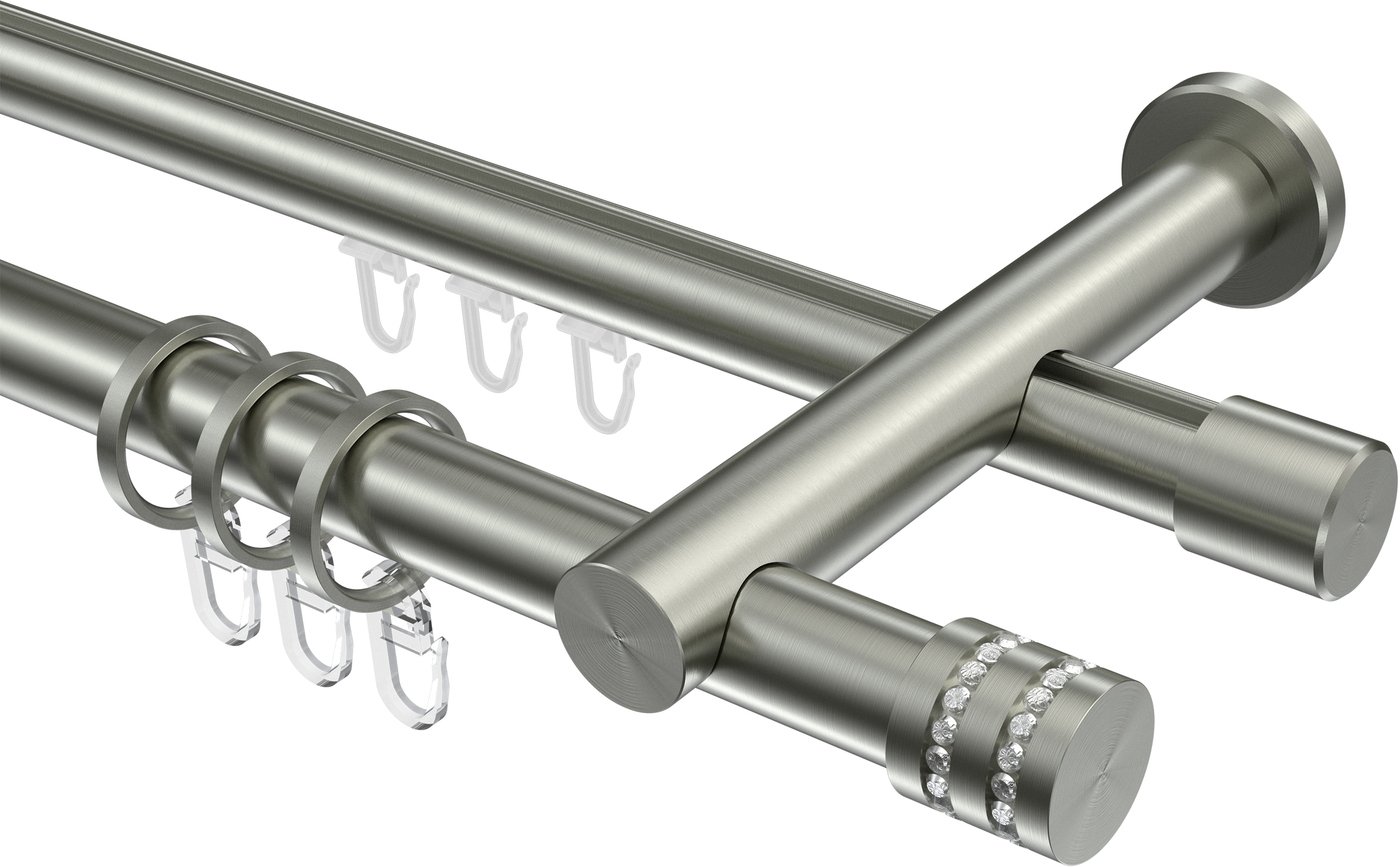 Rundrohr-Innenlauf Gardinenstangen aus Edelstahl-Optik in 20 mm Ø, 2-läufig, Modell PLATON - Estana