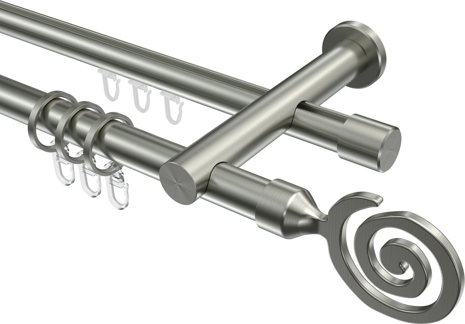 Rundrohr-Innenlauf Gardinenstangen aus Edelstahl-Optik in 20 mm Ø, 2-läufig, Modell PLATON - Galaxa