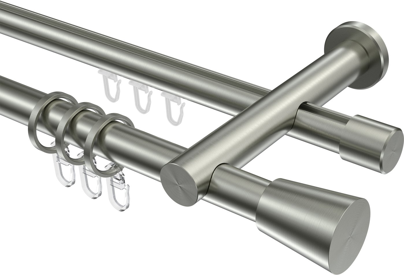 Rundrohr-Innenlauf Gardinenstangen aus Edelstahl-Optik in 20 mm Ø, 2-läufig, Modell PLATON - Sitra