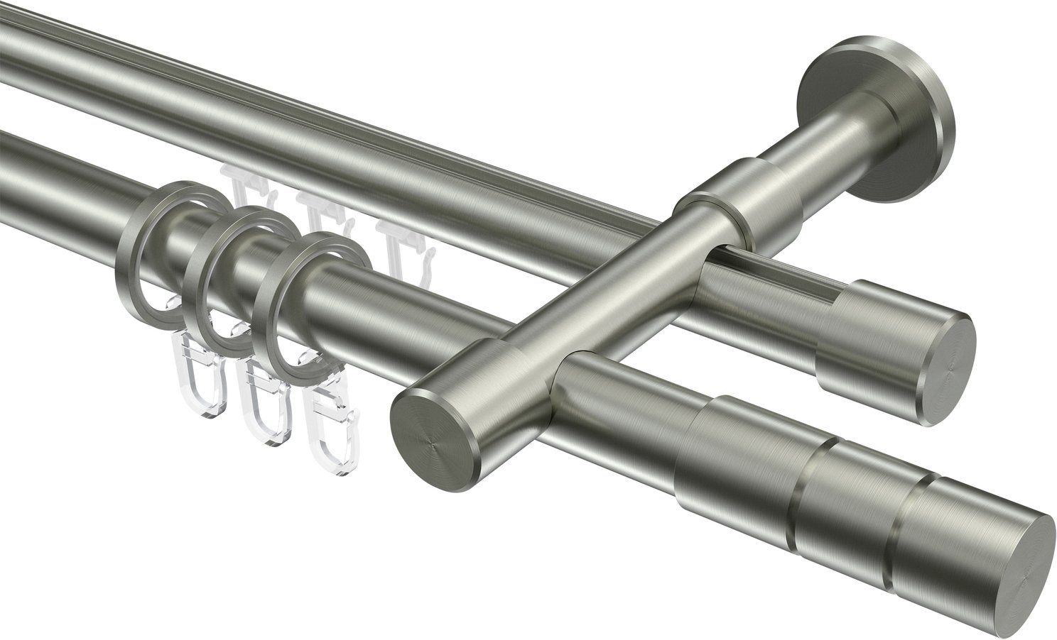 Rundrohr-Innenlauf Gardinenstangen aus Edelstahl-Optik in 20 mm Ø, 2-läufig, Modell PRESTIGE - Elanto