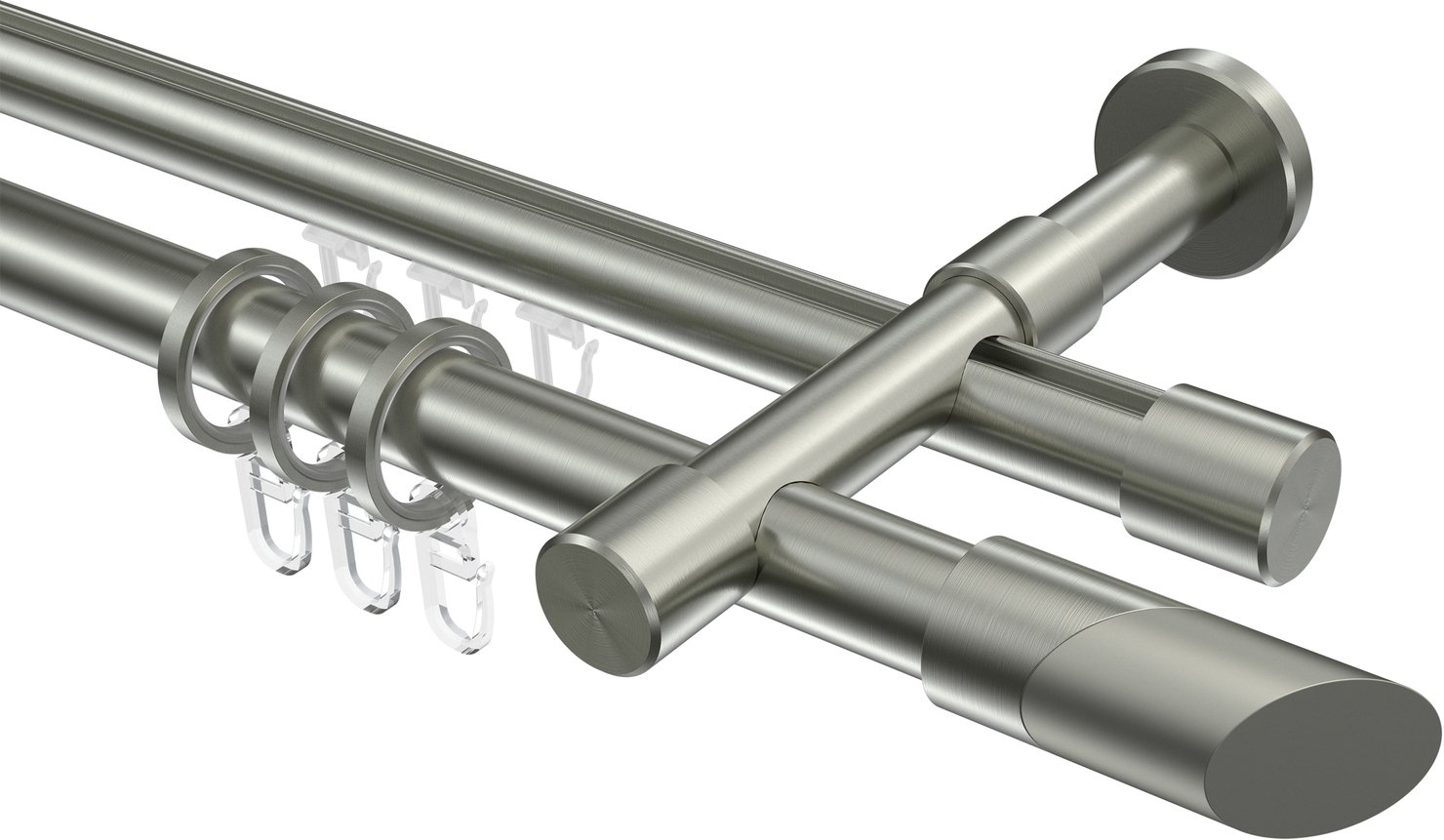 Rundrohr-Innenlauf Gardinenstangen aus Edelstahl-Optik in 20 mm Ø, 2-läufig, Modell PRESTIGE - Verano