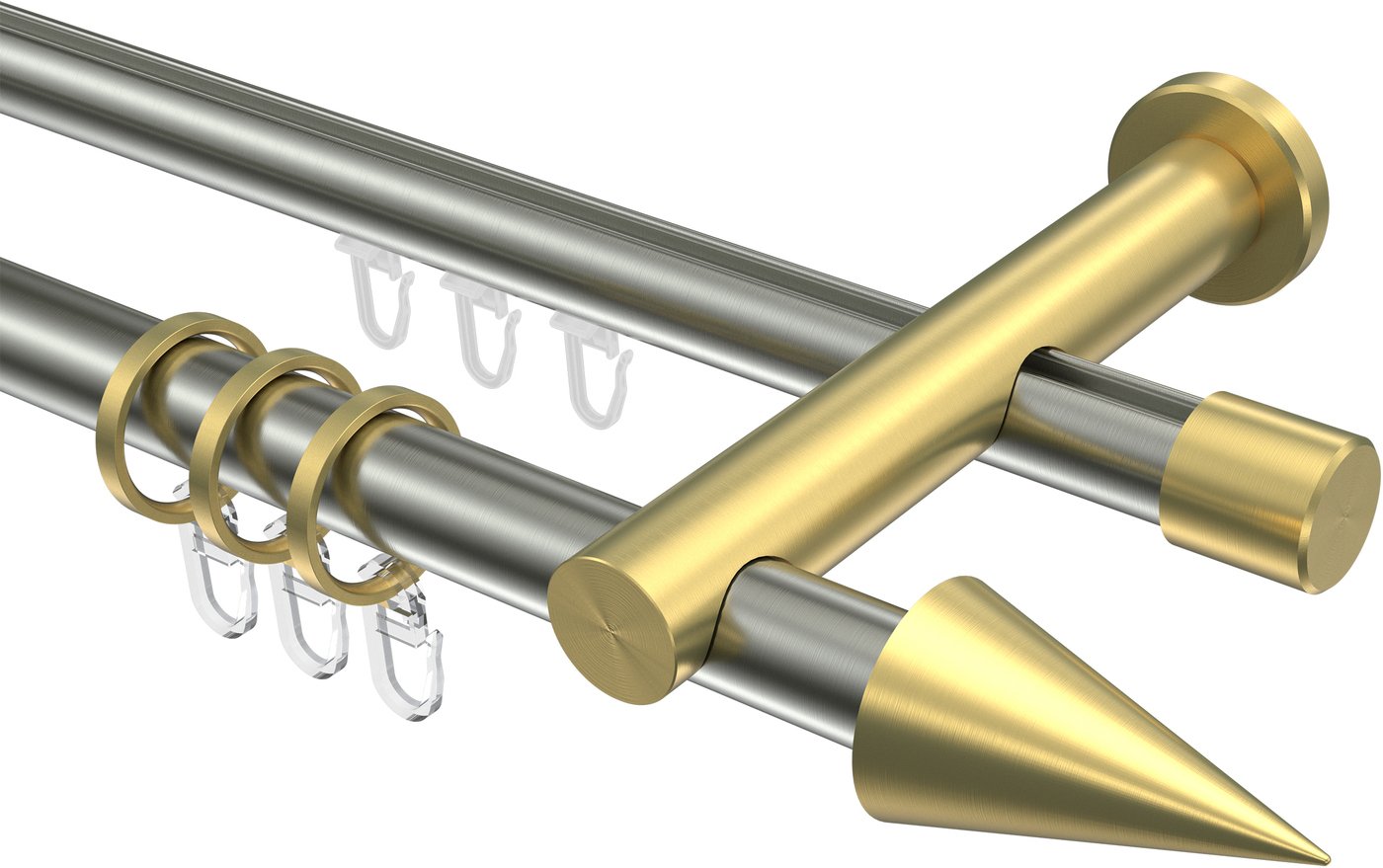 Informationen zu Rundrohr-Innenlauf Gardinenstange Edelstahl-Optik / Messing-Optik 20 mm Ø 2-läufig PLATON - Savio: