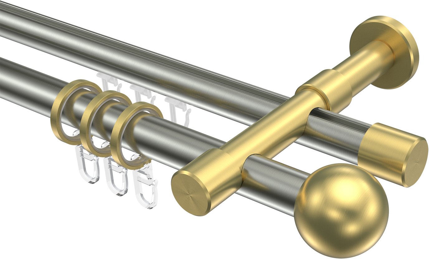 Rundrohr-Innenlauf Gardinenstangen aus Edelstahl-Optik / Messing-Optik in 20 mm Ø, 2-läufig, Modell PRESTIGE - Luino