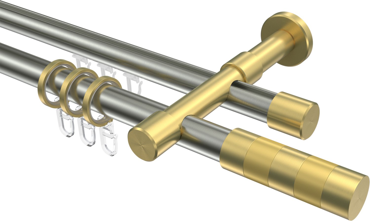 Rundrohr-Innenlauf Gardinenstangen aus Edelstahl-Optik / Messing-Optik in 20 mm Ø, 2-läufig, Modell PRESTIGE - Mavell