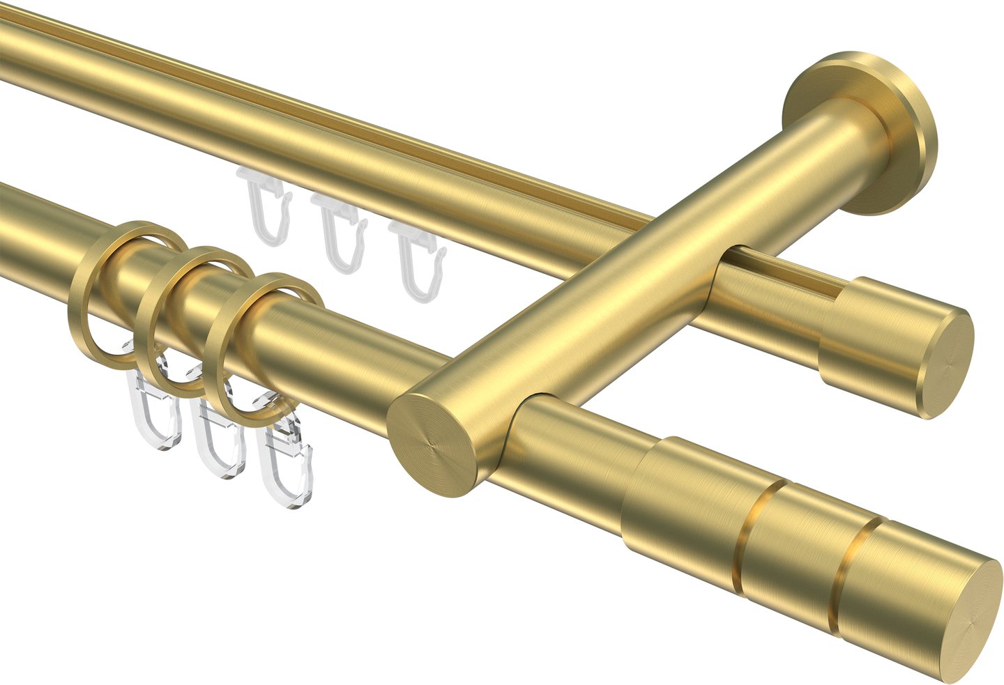 Rundrohr-Innenlauf Gardinenstangen aus Messing-Optik in 20 mm Ø, 2-läufig, Modell PLATON - Elanto