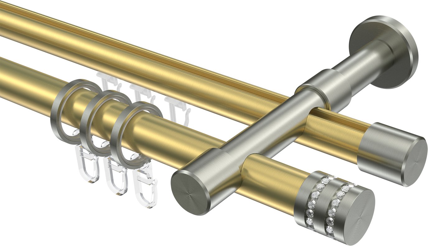 Rundrohr-Innenlauf Gardinenstangen aus Messing-Optik / Edelstahl-Optik in 20 mm Ø, 2-läufig, Modell PRESTIGE - Estana