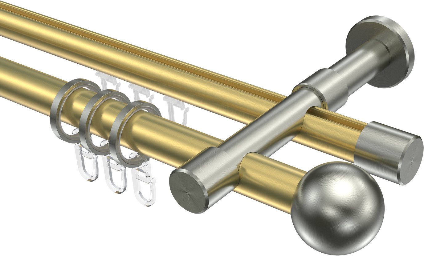 Rundrohr-Innenlauf Gardinenstangen aus Messing-Optik / Edelstahl-Optik in 20 mm Ø, 2-läufig, Modell PRESTIGE - Luino