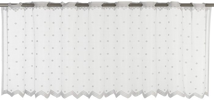 Ein Punktmuster in Spitzen-Optik machen aus dieser weißen, transparenten Scheibengardine ein besonders schönes Dekorationselement für Ihr Fenster.