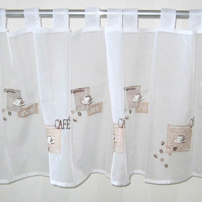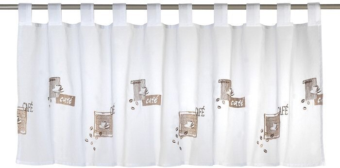 Dieser Panneaux mit Schlaufen eignet sich hervorragend für Ihr Küchenfenster. Das aufwändig bestickte Muster in Braun, bestehend aus Kaffeetassen, Kaffeebohnen und dem Schriftzug "Café" wird alle Blicke auf sich ziehen.