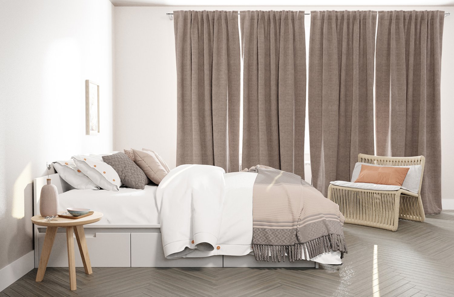 Für die richtige Pflege und Reinigung Ihres Textilbehangs befinden sich entsprechende Pflegesymbole direkt auf einem angenähten Pflegeetikett oder als Aufdruck auf der Umverpackung.