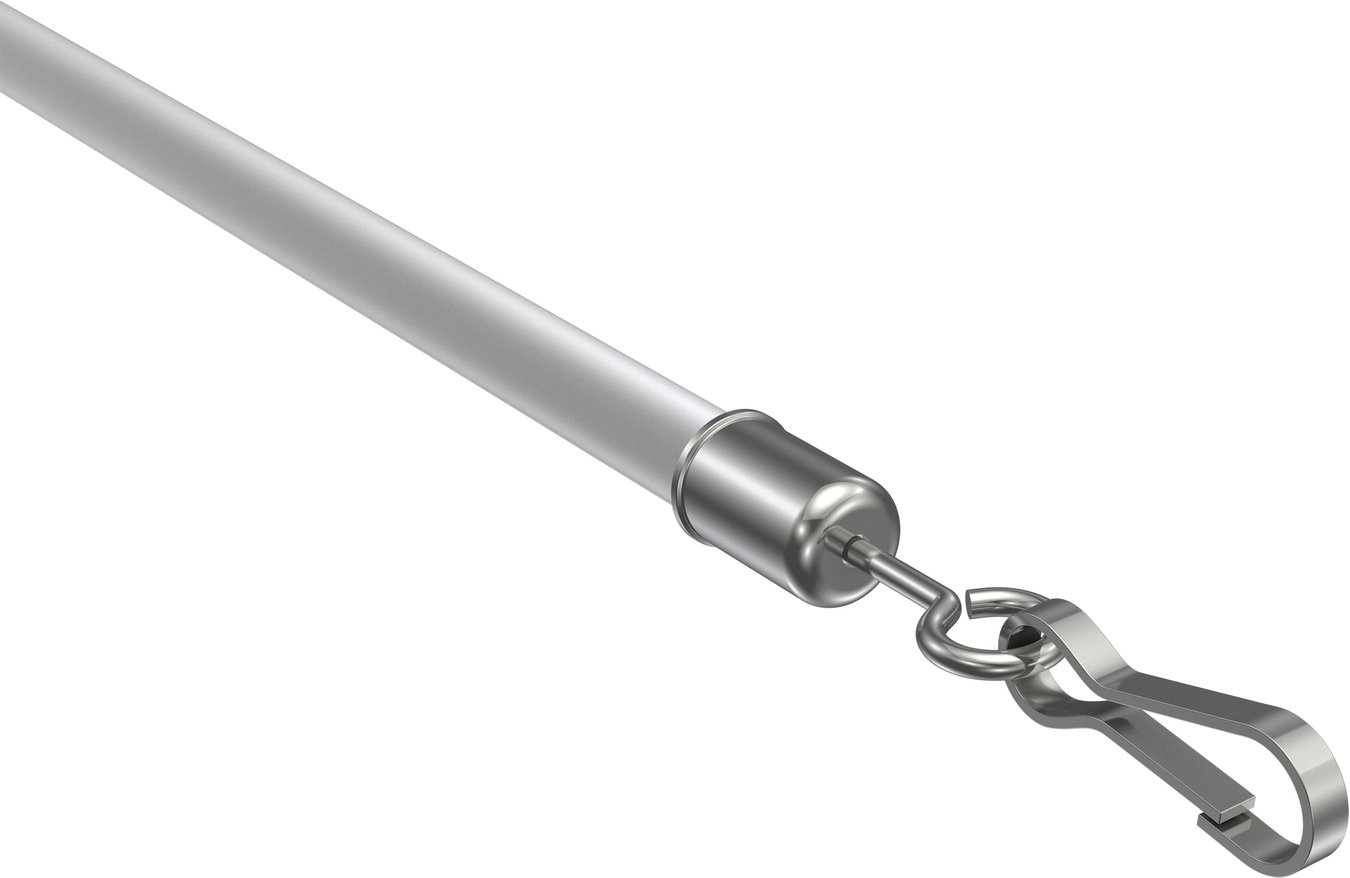 Dieser Schleuderstab kann einfach in einen Schleuderwagen oder in eine für Schleuderstäbe vorgesehene Öse eingesetzt werden, um die Gardine oder Vorhang zu Bewegen. Der bei diesem Schleuderstab verwendete Kunststoff ist transparent und so flexibel, dass dieser beim Bewegen der Gardine nicht zerbricht.