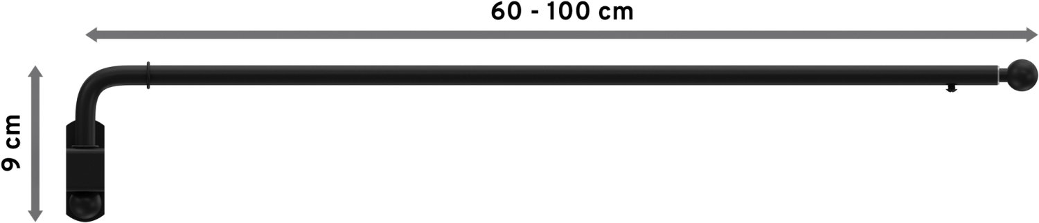 Schwenkstangen aus Metall 13/9 mm Ø, Modell Cassina Schwarz, ausziehbar 60-100 cm