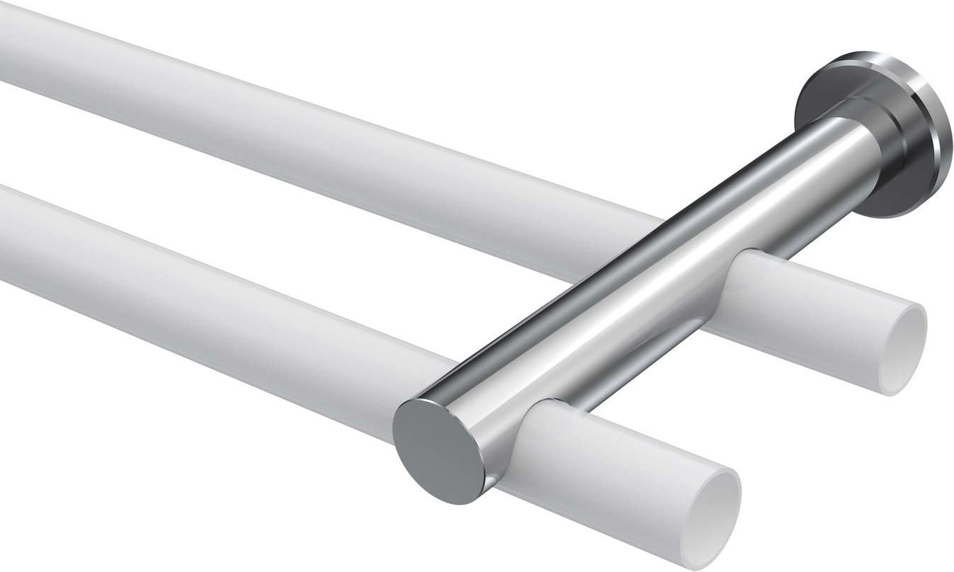 Träger Platon aus Metall in Chrom, 2-läufig 7,5 und 14,5 cm für Gardinenstangen 20 mm Ø