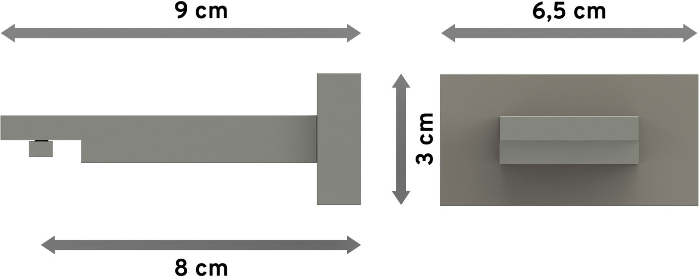 Trägerlänge: 8 cm Wandabstand (gemessen von der Wand bis zur Mitte der Laufnut)