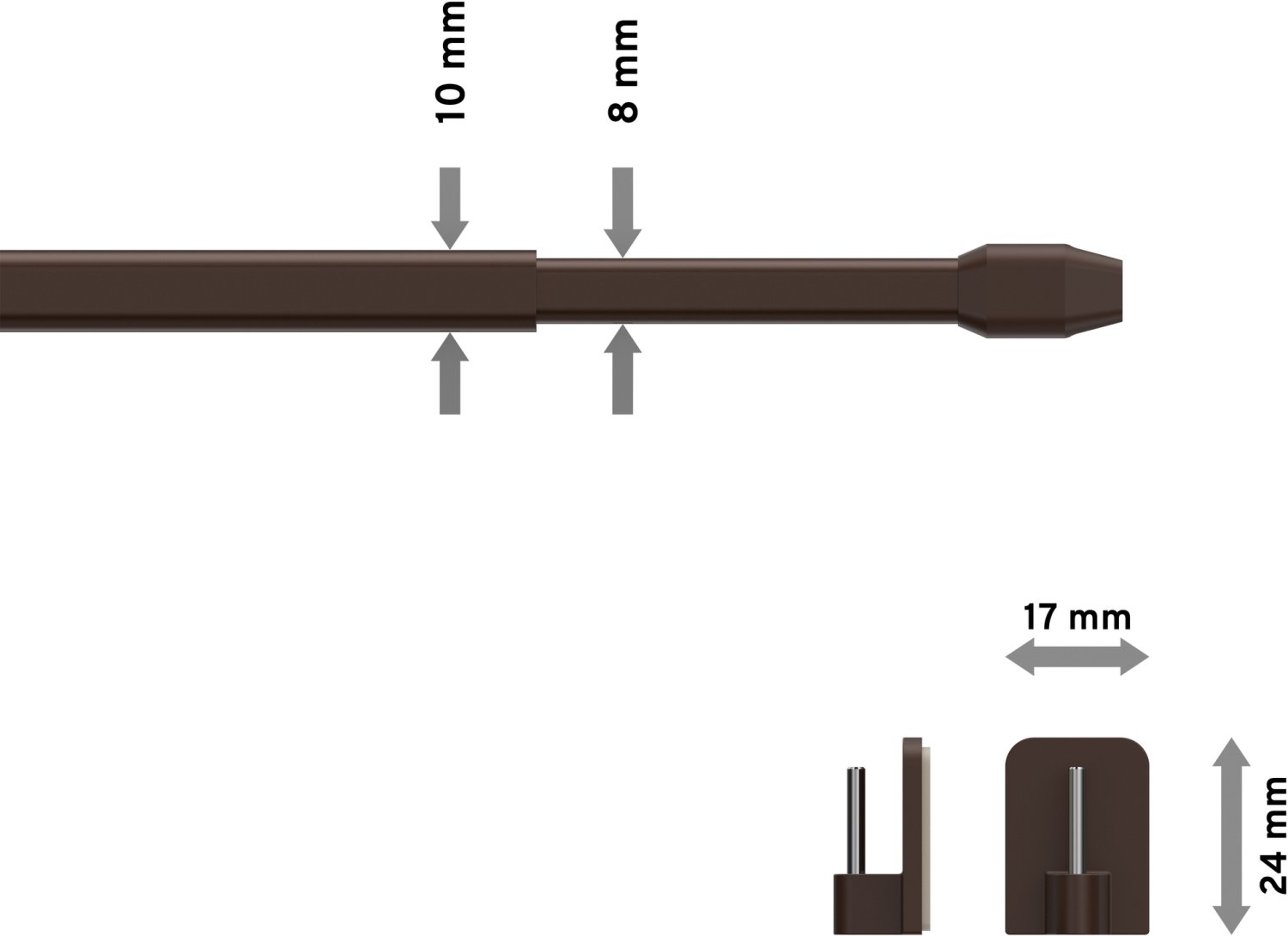 Vitragestangen mit Klebehaken aus Metall / Kunststoff, Modell Geno Braun (Packung mit 2 Stück), ausziehbar