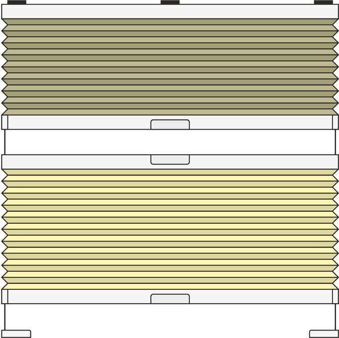 Dieses Wabenplissee System Interdeco mit Tag-Nacht-Funktion kann durch die zwei verschiedenen Stoffe eine optimale Möglichkeit für einen Sichtschutz am Tag und einer Verdunkelung der Fenster in der Nacht bieten. Die beiden Wabenstoffe können mittels Bediengriffen unabhängig voneinander verschoben werden. Der obere Stoffbehang ist an der Oberschiene fest verbunden und kann von oben nach unten bewegt werden. Der untere Stoffbehang kann hierbei variabel mit zwei Bediengriffen verstellt werden. Diese Wabenplissees sind mit einer ausgereiften Technik versehen.